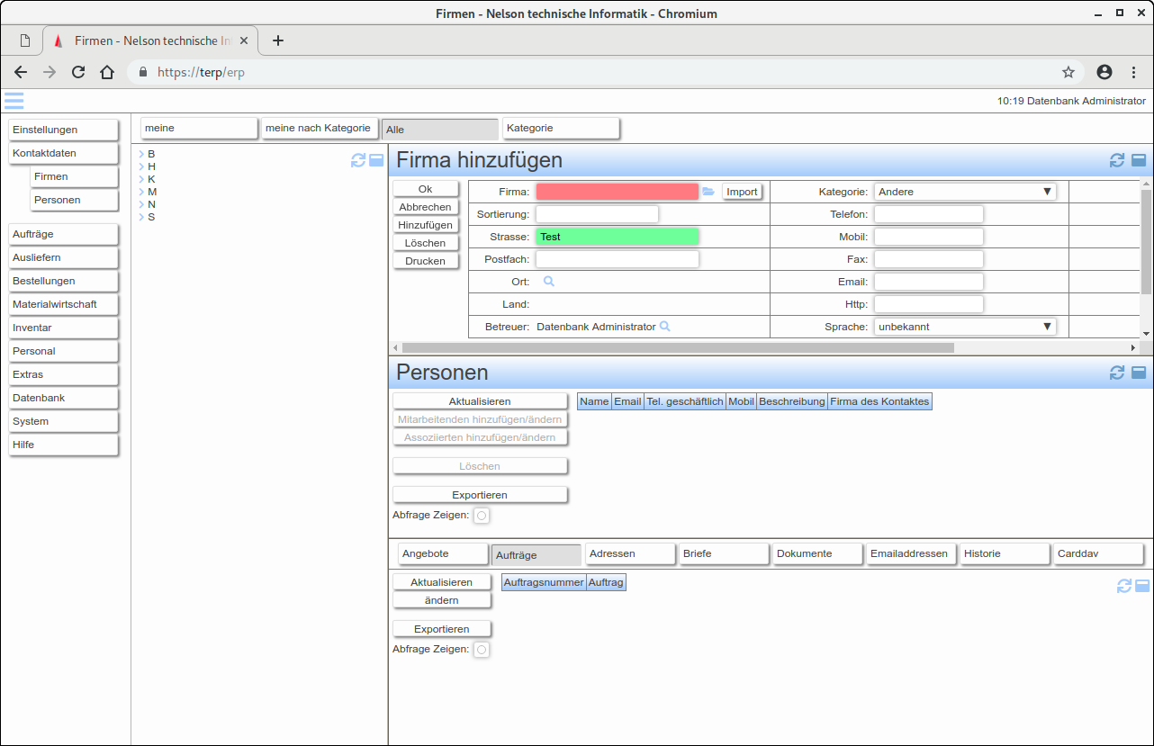 - Hinzufügen/ Ändern - Es wird ein Ein- und Ausgabebereich angezeigt, in der die Daten der aktuellen Tabellenzeile geändert werden können. Falls keine Zeile ausgewählt wurde, wird ein neuer Datensatz angelegt.