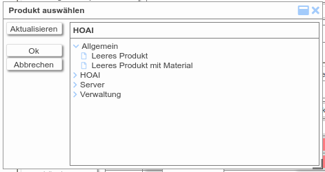 - Ok - Die aktuelle Auswahl wird übernommen. Falls kein Element ausgewählt wurde, wird das entsprechende Element im aufrufenden Eingabebereich in der Regel geleert.